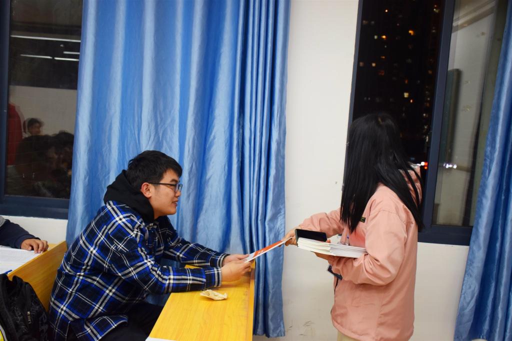 为确保宣讲活动的顺利开展,17cg团委、学生会学习部全体成员在下班宣讲前于土木楼507召开了预备会议。在下班宣讲中,宣讲者向各班级发放了《四级专项先锋班配套手册》,向同学们详细介绍了“四级先锋班”免费课程及其报名方法,并一一解答同学们提出的问题。“四级先锋班”免费课程由前新东方名师周思成主讲,包括词汇听力语法阅读翻译写作共十一个小时,免费课程旨在提升同学们对基础的掌握,为同学们提供解题思路和技巧解决部分考试中的常见问题
