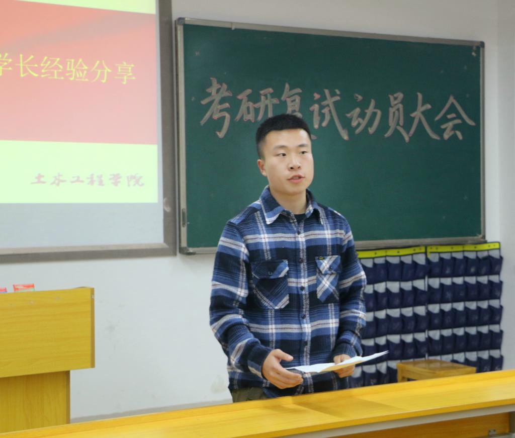 (土木院通讯员 徐湘嫔) 为了让17cg考研学子更好地备考研究生复试和做好考研调剂工作,3月17日19:30,17cg在土木楼506举办了考研复试动员大会,参加大会的嘉宾有17cg院长曹国辉、副院长王新忠、副书记王传浩、桥梁与结构工程研究所副主任刘劲、学工办主任许磊等,许磊主持了本次大会。