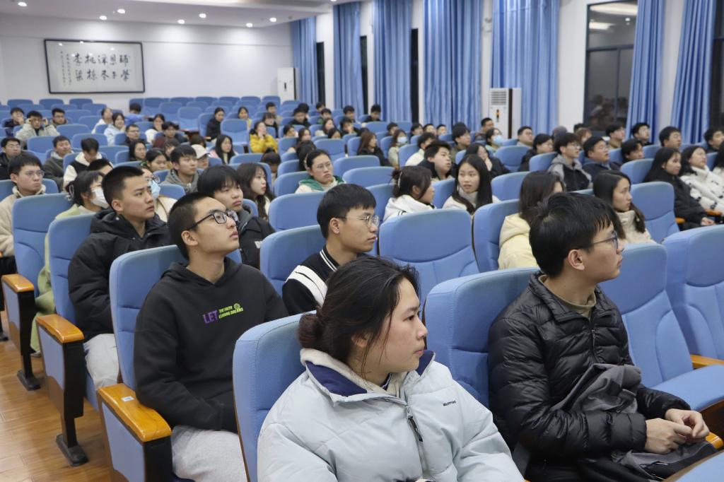 黄智作动员讲话。黄智聚焦“为何考研”“如何考研”两个问题与大家作了交流分享。他鼓励同学们心怀考研梦想,不负青春韶华,要充满信心,以昂扬姿态迎接考研,挑战自我。他分析了目前考研的四种情况,指出,作为漫漫考研路上的一员,同学们应当确定自身努力的方向与目标,切忌盲目跟风,要坚守考研本心,矢志不渝。黄智强调,考研学子应当就自身兴趣爱好、家庭环境、个人能力等相关方面作好个人评估,并以此为依据合理的选择考研学校;要科学规划考研的复习进度;同时还要注意劳逸结合与饮食健康。