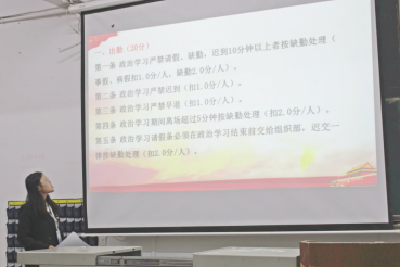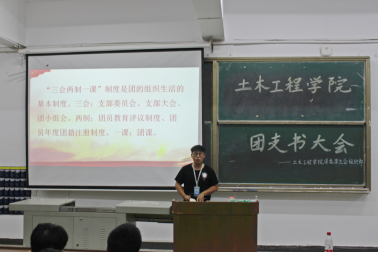 会议伊始,全体肃立,奏唱国歌、团歌。随后,组织部干事上台进行自我介绍。接着,阳鸿祥介绍了团支书的工作职能及主要职责,并对团支书工作开展方面做出了要求。组织部副部长刘雅婷、周欣先后介绍了团支部工作手册考核方案、政治学习考核方案,向各班团支书详细讲述了考核内容及要求。为响应上级团组织号召,落实基层团组织建设,赵文博向各班团支书重点介绍了“三会两制一课”,并强调了团支部工作手册的重要性,要求团支书提高思想站位,加强支委队伍建设,落实团建工作,引导班上同学积极参与17cg团校特色辅导课。