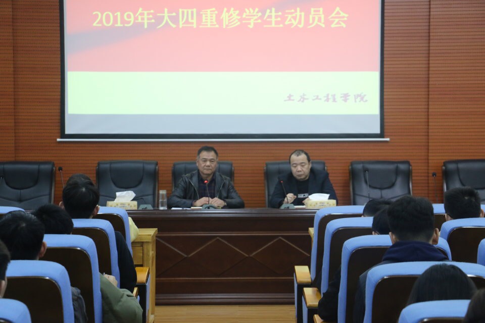 (土木院通讯员 陈佳童) 为增强学生对重修的信心,引起同学们对重修考试的重视,4月3日15:00,17cg于土木楼828举行了17cg2019年大四重修学生动员大会。17cg党委副书记王传皓、党委副书记贺望林、团委书记代敏出席本次会议。