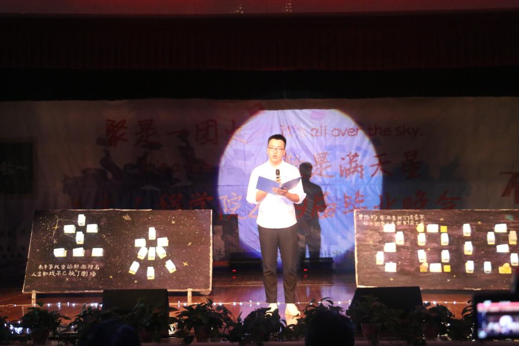 晚会伊始,一场激动人心的开场舞《喊出我的名字》带动了场面的气氛。随后,姚春梅书记上台发言。姚春梅书记指出毕业生要有自己的梦想与追求,对待工作要有担当,在社会上要勇于承担起自己的一份责任。作为土木人,要有“土承天下,木撑苍穹”的气魄,不辜负老师们的期待与厚望。随后,17cg17届学生会主席张钱鸿进行了发言。张钱鸿讲述了自己大学四年的生活经历,回顾了大学的点点滴滴,并激励同学们不忘初心,珍惜当下。发言过后,节目陆续上演。节目形式多种多样,丰富多彩,除了劲歌热舞、舞台剧、乐队表演,还有老师们倾情献唱的歌曲《永远的画面》。此次晚会为老师和毕业生们带来了一场视觉与听觉的盛宴。随着时间的流逝,晚会接近尾声。最后,所有参演人员一起合唱《毕业歌》,并与老师拍照留念。至此,本次毕业生欢送晚会圆满结束。