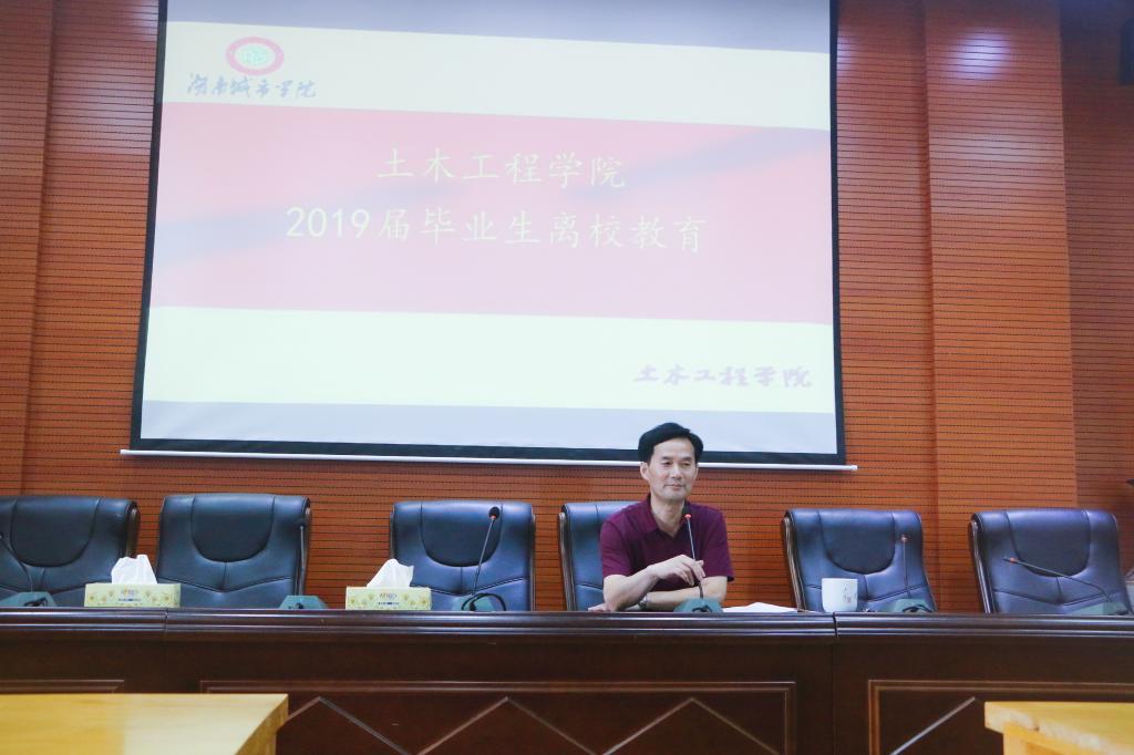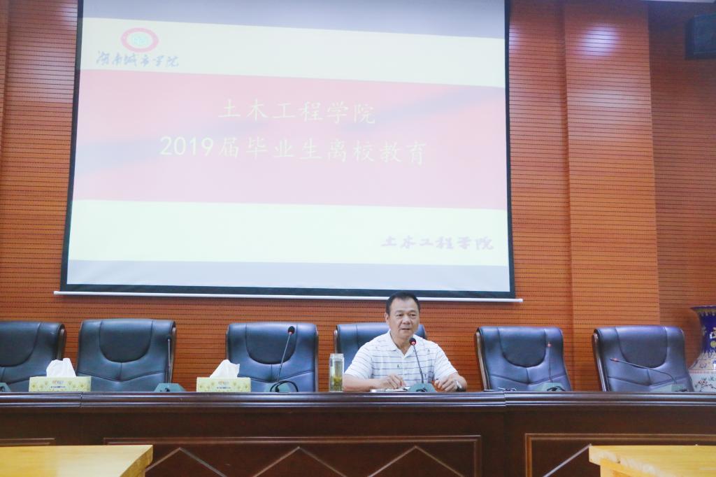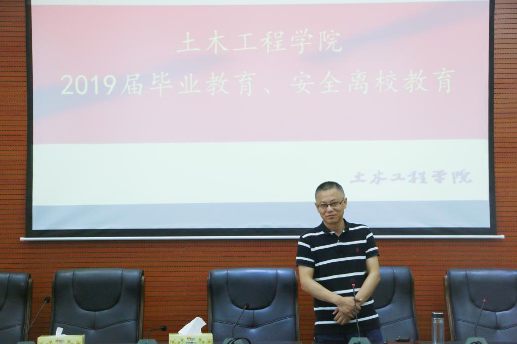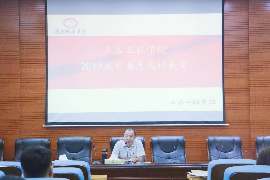 (土木院通讯员 徐湘嫔) 为确保2019届毕业生文明、安全离校,教育广大毕业生强化理想信念,正确面对压力挫折,学会感恩诚信和遵纪守规,6月11日,17cg于土木楼828学术报告厅进行了2019届毕业生离校教育。本次2019届毕业生离校教育共进行6场,17cg党委书记郭白泉、17cg院长曹国辉、17cg副院长付贵海、17cg副院长王新忠、17cg党委副书记贺望林、17cg党委副书记王传浩等院领导作为主讲老师分别为毕业生上了一堂生动的毕业教育课。