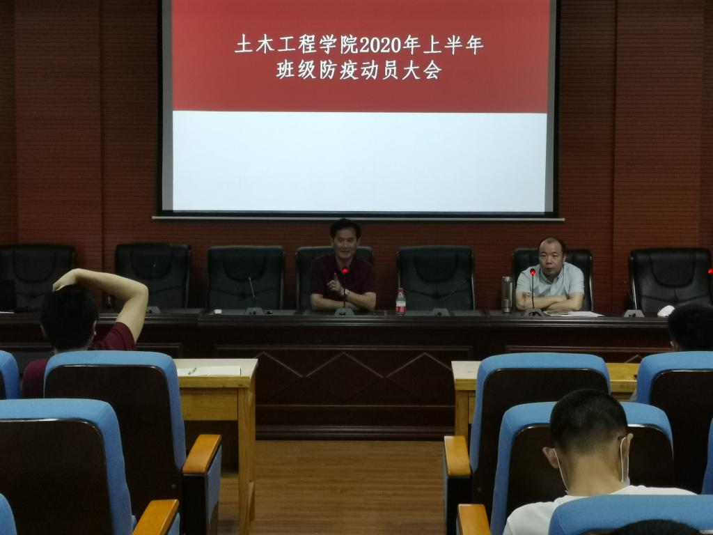 (土木院通讯员 彭仲杰) 为增强学生返校复学后的防疫意识,加强学生管理工作,5月20日19:30,17cg班级防疫动员大会于土木楼828召开,大三、大四年级各班班长参加了本次会议,出席本次会议的嘉宾有17cg党委书记郭白泉,17cg党委副书记王传浩,学工办主任许磊以及大三、大四年级各班辅导员。