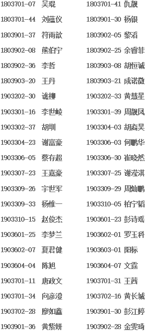 经个人的申请,班主任、辅导员评议,依据湖南城市学院2020年“国家励志奖学金”推荐与评审的申报条件,拟推荐1703201-41李璟仪等95名国家励志奖学金获得人选,1903603-29曾林芳为备选人,现向全院师生公示。公示时间:2020年11月2日-11月6日;如有异议,请于11月6日之前以书面或者口头方式向学工办反映。