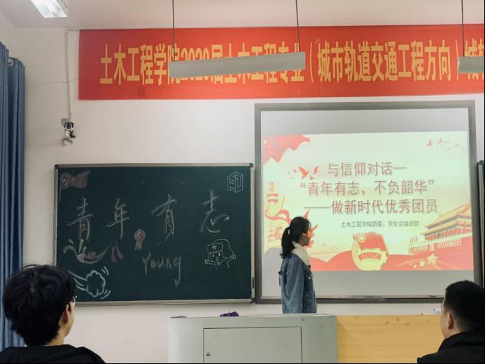 班会最后,由团委副书记杨帅对本次会议内容进行总结,并再次强调新时代青年精神,提出新时代青年应有远大理想,时刻牢记自己的时代使命。杨帅提出,希望全体同学一起努力、共同进步,不断开拓进取、锐意创新,成为一名优秀的共青团员。至此,本次班会圆满结束。