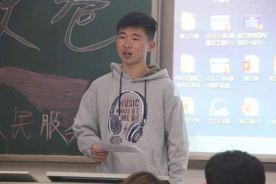 本次演讲比赛为主题演讲,演讲主题为“百年史卷,心颂恩情”,参赛班级各派出三名选手上台演讲。在主持人宣布比赛开始后,选手们依次上台演讲。