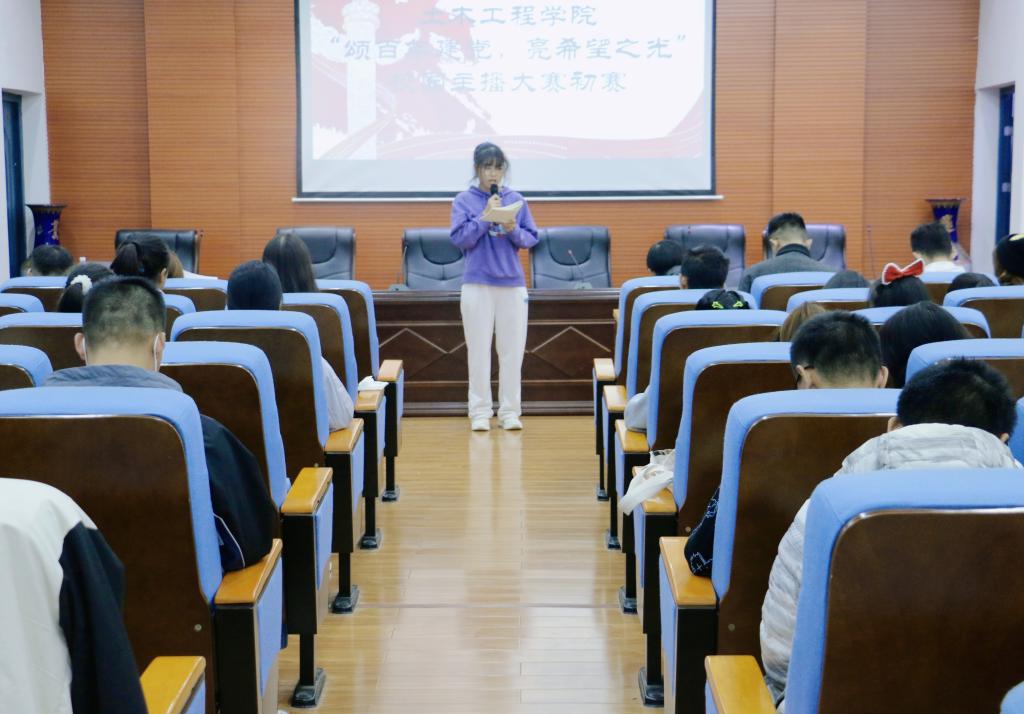 (土木院通讯员 龙子俊) 为庆祝中国共产党成立100周年,缅怀革命历史,弘扬爱国精神,学校决定举办“颂百年建党,亮青年之光”第二十届校园主播大赛。17cg于10月23日19:00在土木楼828学术报告厅进行初赛选拔,初选比赛内容分为演讲、配音、情景演绎、相声、小话剧等。初赛选拔由17cg团委、学生会副主席彭仲杰主持,同时评委对选手进行现场评分,并筛选出部分优秀作品,推向校内参与比赛。