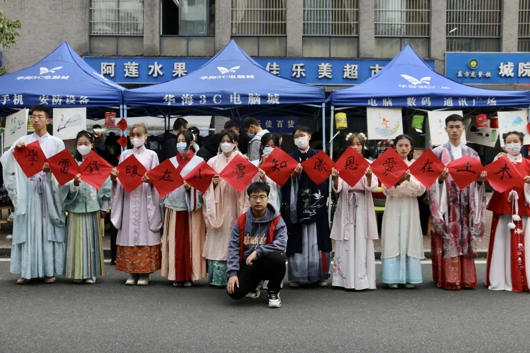 在活动开展期间,氛围组的志愿者们身着汉服在一旁伴着歌曲,翩翩起舞,宛若风飞雪,悦如飞燕游龙。志愿者同时给同学们介绍本次活动,带领同学们完成猜灯谜游戏,答对的同学可得到冰糖葫芦。灯谜活动让同学们体会到了语言的艺术,沉下心来体会传统文化深厚的底蕴。