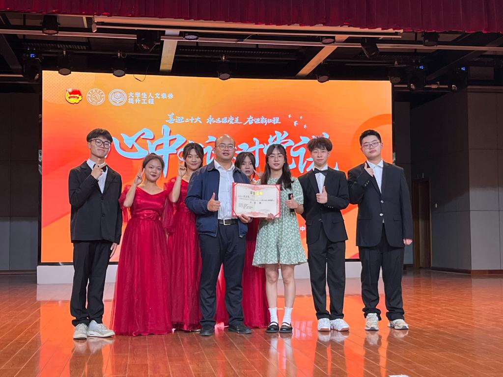 我院与其他13支二级学院队伍同台竞技。舞台上,一支《沐土木之光,颂百年荣昌》朗诵充分地展现出我院青年对党和祖国的深厚感情以及对未来的美好祝愿。“土承天下,木撑苍穹”刚劲有力的词句诵出广大土木建设者的热血青春以及奋勇向前的冲劲,铿锵有力的朗诵让文字鲜活起来,我院青年用实际行动展现了学院特色和青春力量,发出当代青年的最强音。此外,我院党委副书记黄智和张根宝老师在“心中有话对党说”青春诵读会上同其他院系老师领导一同为全校师生带来了特别朗诵《可爱的中国》。