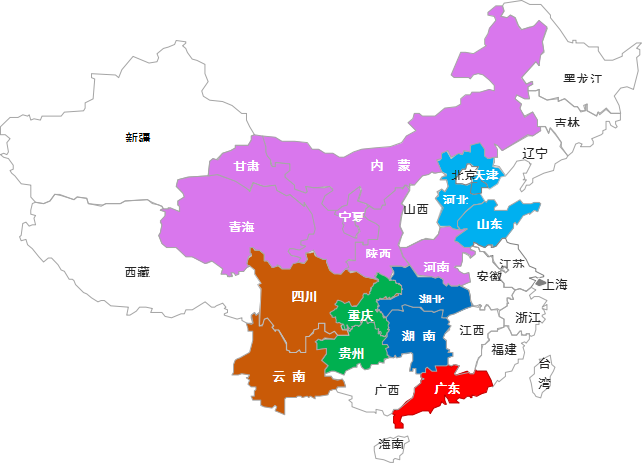 华中、华东、华南、西北、西南等地区 |