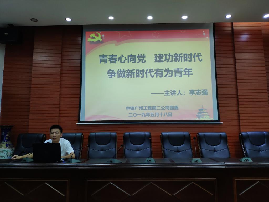 5月18日下午,17cg学生党务工作办公室邀请中铁广州工程局二公司团委副书记、原17cg第一学生党支部书记、优秀校友李志强同志,为预备党员开设“青春心向党,建功新时代,争做有为青年”特色党课,17cg全体预备党员聆听党课,学生党办主任李文杰同志主持。
