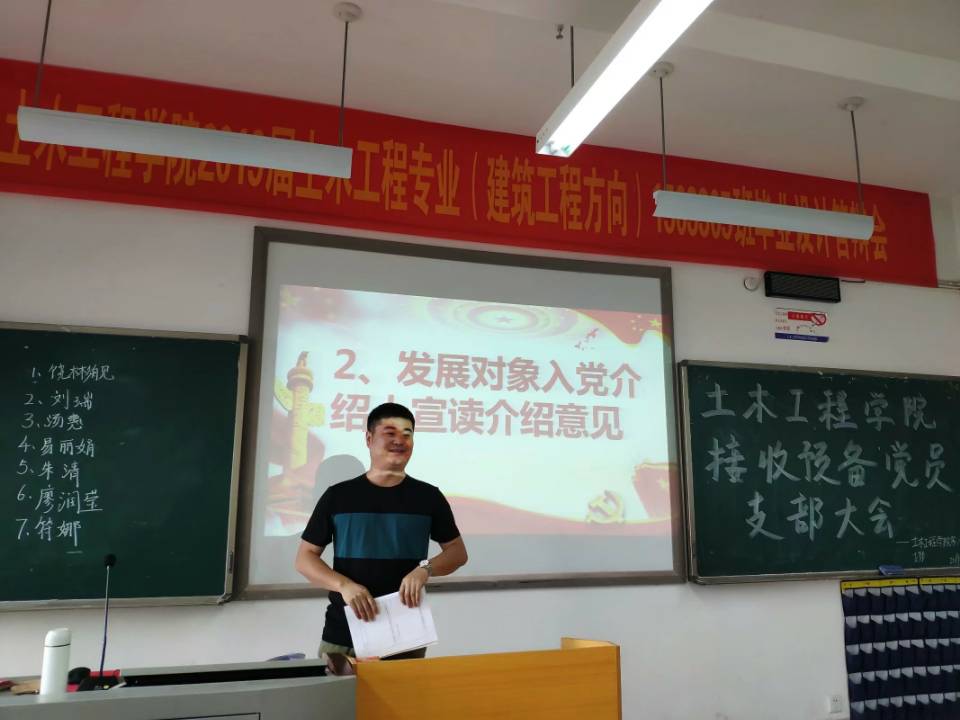 (土木院通讯员 陈倩) 2019年5月30日下午,土木工程八个学生党支部分别在土木楼五楼教学室召开预备党员接收大会,各支部全体党员同志,发展对象参会,分管各支部的院领导莅临会议指导。