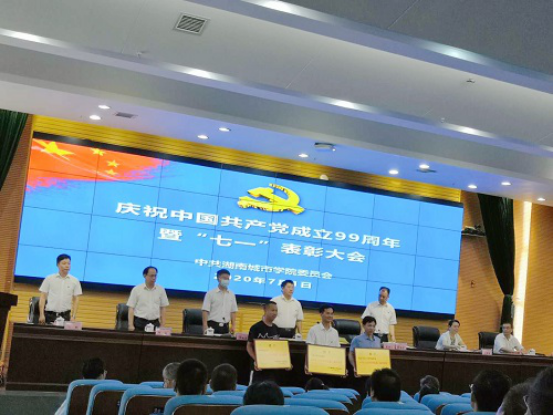 20120年7月1日,湖南城市学院庆祝中国共产党成立99周年暨“七一”表彰大会在图书馆报告厅隆重举行。大会宣布并表彰了湖南城市学院2019—2020年度党建工作先进集体和先进个人,17cg党委荣获学校“先进二级党组织”、力学教研室党支部书记李文斌同志荣获学校“优秀党务工作者”、工程造价系党支部陈宏伟同志荣获学校“优秀党员”,学生党员赵文博、刑易航、梁鑫森等荣获学校“优秀学生党员”。