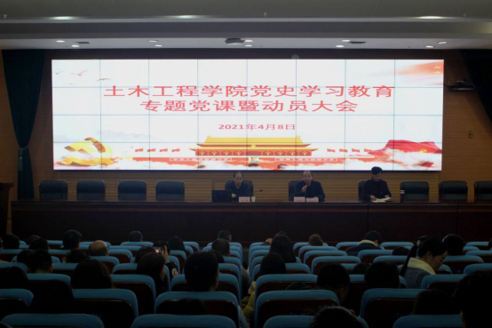 2021年4月8日晚7点,17cg党委在图书馆报告厅召开党史学习教育动员大会。学校党委委员、副校长、党史学习教育领导小组成员何振出席会议并作指导讲话。学院领导班子成员和全院师生党员参加会议。会议由学院党委副书记王传浩主持。