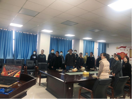 院党委组织全体院领导、党委委员、党支部书记和师生党员代表50多人,通过视频会议方式在土木楼722会议室集中收看现场直播。