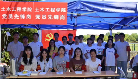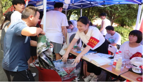 让党旗在迎新点高高飘扬。9月8日--10日,新生集中报到期间,学生党支部在迎新点高高竖起鲜艳的党旗,设立“学生党员服务台”和“党员先锋岗”,亮身份、展形象,为新生提供热情周到的服务,值班党员冒着高温酷暑,对来往咨询的新同学和家长热心答疑解惑,并积极宣传校园安全、电信反诈等安全知识。