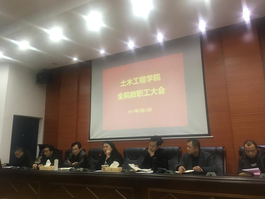 院长曹国辉同志宣布了院领导的分工。对标“一流本科、一流专业、一流人才”建设,对标学校“双一流”、硕士立项单位建设和2019年工作要点,他就学院在土木工程专业认证、应用特色学科建设、高层次人才队伍建设、深化教研教改、完善教学质量保障、科研项目平台建设、学生考研等重点工作任务作了全面的部署安排,强调要进一步提振全院教职工干事创业的士气,凝心聚力推进学院改革发展再上新的台阶。