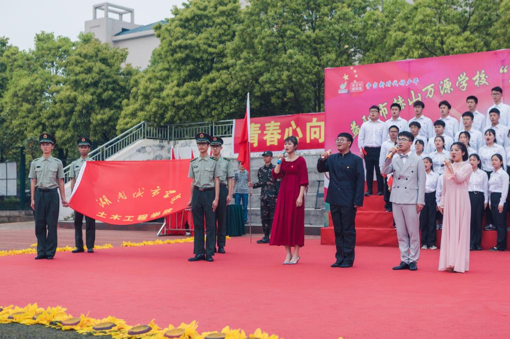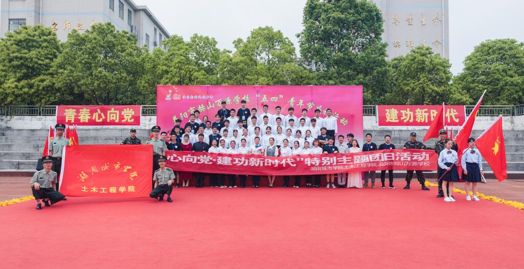(土木院通讯员 周宏波) 五四风雷,激荡百年,为纪念五四运动100周年,深入贯彻习近平总书记在中共中央政治局第十四次集体学习时的重要讲话精神,积极响应共青团中央关于全团开展“青春心向党,建功新时代”主题教育实践活动的工作部署,大力弘扬五四精神,4月25日9:00,湖南城市学院17cg携手益阳市赫山万源学校在益阳市赫山万源学校成功举办了“青春心向党·建功新时代” 特别主题团日活动暨“为祖国点赞”经典诵读比赛。出席本次活动的嘉宾有:赫山区教育局团工委书记赵曲才、副书记蔡建华,区人民政府教育督导室城东片督学责任区主任邓旭、副主任兼赫山万源学校挂牌督学郭燕飞,万源教育集团总校副总校长李建成,万源教育集团总校长助理罗虹,湖南城市学院17cg团委书记代敏,赫山万源学校党支部书记陈天益、副校长王强、副校长程勇华,学校团委书记刘丽萍,初中部德育副主任蒋燕飞,七年级年级组长刘静。