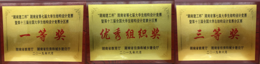 2019年6月28--30日,湖南省第七届大学生结构设计竞赛暨全国第十三届大学生结构设计竞赛分区赛,在湖南科技大学落下帷幕,有来自全省18所高校和10个独立学院共计76支代表队同台竞技。由我校17cg陈宏伟、肖虹、彭桂强老师指导的三支学生代表队,凭借扎实的专业功底、娴熟的实践操作、默契的团队合作和沉稳的临场发挥,历经评审、答辩、外观评分、竖向荷载加载、水平荷载加载等程序,在包括中南大学、湖南大学等强手如云的激烈竞争中,斩获一等奖1个、三等奖1个,学校荣获“优秀组织奖”,成绩位列参赛高校前茅。