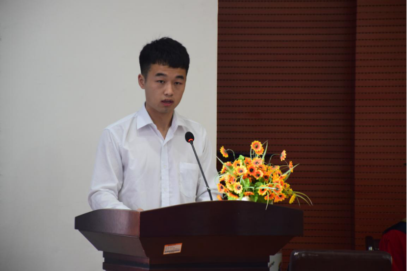 毕业生代表李志冬、肄业生代表赵文博先后发言。李志冬回顾四年来的成长经历,感谢老师、同学们无微不至的关心与陪伴,他代表2020届全体毕业生向母校郑重承诺:把个人青春之“小我”融入祖国人民之“大我”,用双肩担起时代重任,用奋斗书写青春底色,用实际行动践行“品学兼修、知行统一”的校训精神。赵文博对即将要踏上人生新征程的毕业生们送了自己最诚挚的感谢与祝福,希望毕业生们能够在新的人生征程激情迸发,一路高歌奋进,用自身的品德修为、专业内涵与知识技能为国家与社会创造价值、实现梦想。同时表达了传承发扬学长学姐好传统好作风,立志在自身意志品质、专业学习、技能训练、社会实践和积极参与推进学校学院改革发展等方面跑好接力赛争创好成绩的决心和信心。