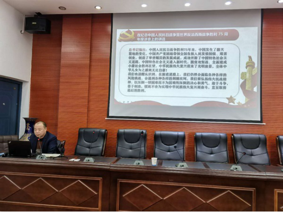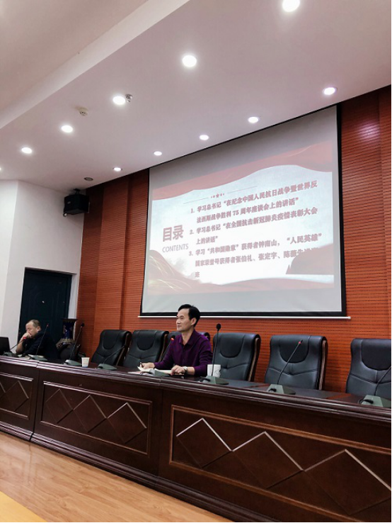 在主题党日活动阶段,王传浩集中领学了“习近平总书记在纪念中国人民抗日战争暨世界反法西斯战争胜利75周年座谈会上的讲话”“习总书记在抗击新冠肺炎表彰大会上的讲话”、“共和国勋章”获得者钟南山、“人民英雄”国家荣誉号获得者张伯礼、张定宇、陈薇的先进事迹以及习总书记在科学界座谈会上的讲话精神等,并和大家一起交流分享了上学期学校学院复学复课、抗击疫情的经验体会。
