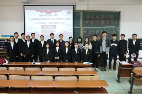 院团委书记谢文静、湖南城市学院习近平新时代中国特色社会主义思想读书会会长刘慧出席会议,学院200多名会员参加会议。