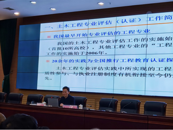 座谈会后,童小东教授应邀在图书馆报告厅为全校教师作了专题学术报告,以土木工程专业为例对工程教育专业认证工作进行了系统的实操性主动性强的辅导,我院全体院领导、系室中心负责人和部分教师代表聆听报告。