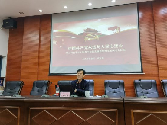 2021年4月26日晚7:00,学院党委书记、湖南城市学院习近平新时代中国特色社会主义思想读书会(简称“习读会”)17cg分会指导老师郭白泉,在土木楼828为“习读会”分会学员主讲党史学习教育专题党课。“习读会”指导老师、学院团委书记谢文静老师参加,全体学员参加党课学习。