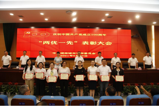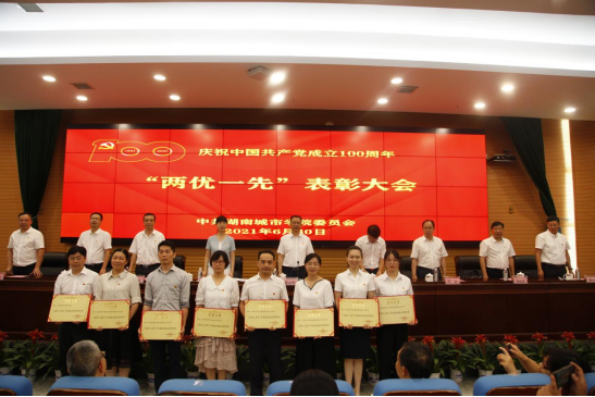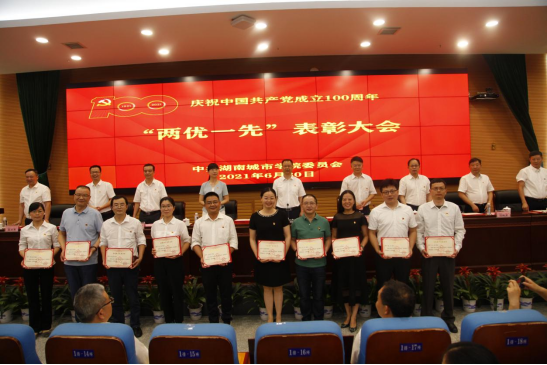 学校党委副书记何旭娟同志宣读了上级党组织关于2020-2021年度“两优一先”表彰决定。17cg党委荣获湖南省教育系统“先进基层党组织”(公示期);17cg党委委员、组织员徐丽苹同志荣获湖南省教育系统“基层党务工作示范岗”;工程造价系党支部荣获学校“先进基层党组织”;教工党员何美丽、毛广湘,学生党员杨开业、熊益荣获学校“优秀共产党员”;党委委员、力学教研室党支部书记何叶荣获学校“优秀党务工作者”。
