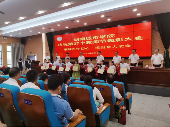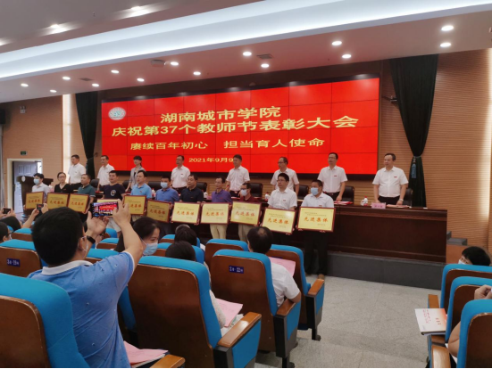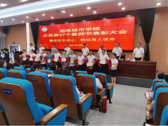 2021年9月9日下午,学校在图书馆报告厅隆重举行庆祝第37个教师节表彰大会,对2020年度教学、科研、管理、服务等各类先进集体和先进个人进行了表彰奖励。