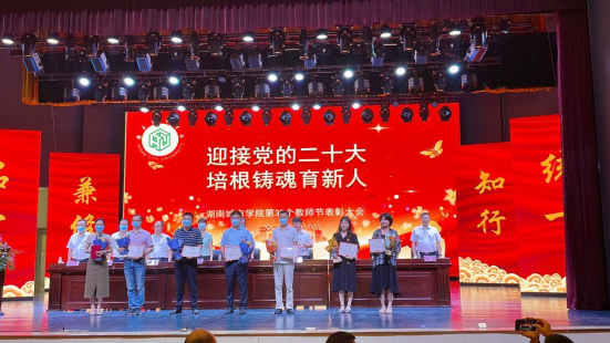 2022年9月8日下午,湖南城市学院庆祝第三十八个教师节表彰大会在音乐厅隆重举行,对2021年度各项获奖的单位和个人给予表彰。