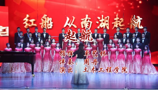 “为梦想,我们扬帆起航,风雨过后,任雄鹰飞翔”“品学兼修求真知,知行统一做真人”“要从这里扬帆起航”优美的旋律、铿锵的表达、倾情的献唱,发自肺腑的情感流露,凸现出土木学子“请党放心、强国有我”的报国之志,服务人民、建功立业的为民之情、踔厉奋发,勇毅前行的奋斗之勇!
