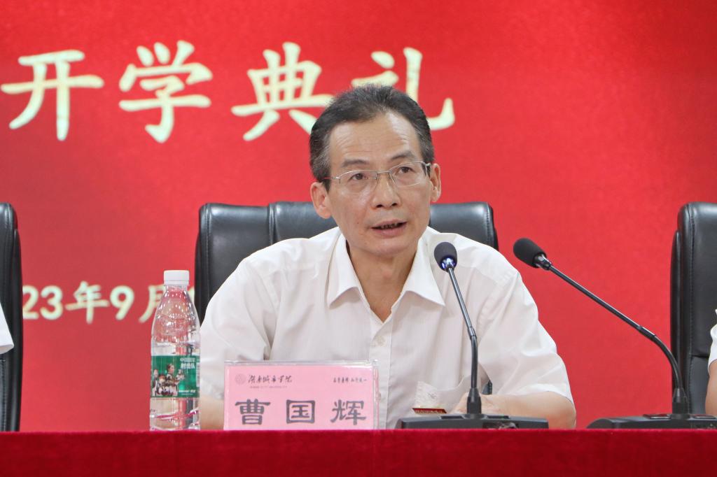 院长曹国辉在致辞中给全体新生提出三点希望和要求:一是要志存高远,报效祖国。要把个人“小我”融入国家发展、民族复兴、人民幸福的“大我”之中,在实现人生价值、升华精神境界中擦亮青春的底色,矢志不渝将自我人生奋斗目标朝着党所指引的方向,与时代同频共振、与人民血肉相连。二是要品学兼修,厚德载物。要求大家同时修养自身品德和学识学问,二者不可偏废,努力成为德智体美劳全面发展的社会主义事业的建设者和接班人。三是要知行统一,自强不息。要学以致用,根据自身的知识储备,尽快构建属于自己的大学生涯发展规划和知识体系,勇于探索、勤于实践,在专业实习实训、社会实践、学科竞赛等实践活动中激发潜能,练就过硬本领,做堪当民族复兴大任的时代新人!