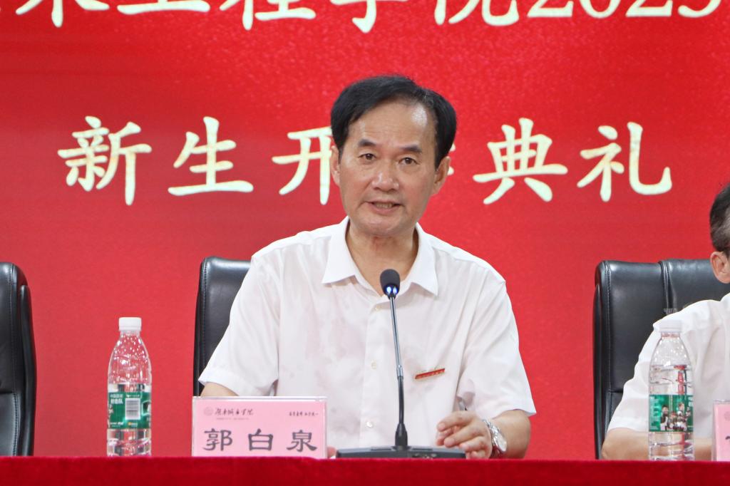 郭白泉深情寄语全体新生:要怀抱梦想又脚踏实地、敢作敢为又善作善成,不负时代、不负韶华、不负青春、不负父母老师教育培养与殷切期盼,牢记“请党放心、强国有我”的青春誓言,踔厉奋发、勇毅前行,用智慧和汗水书写属于自己精彩而充实的大学华章!