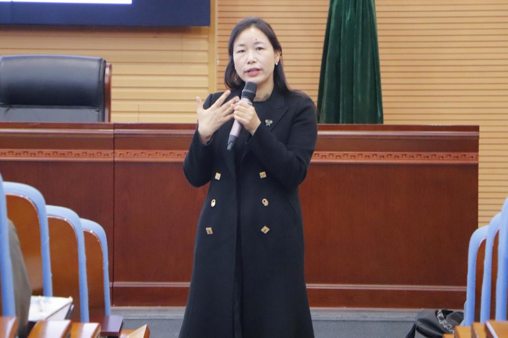 创新创业学院覃霞老师主讲了大学生交际礼仪。她以亲身经历传授现场学生基本礼仪和人际交往的处理方法,引导学生干部应注重日常形象,树立学院良好形象,引领全院学生形成优秀氛围。