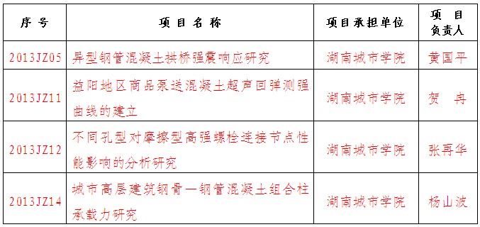 2013年益阳市第一批市级科技计划指导性项目土木院立项名单