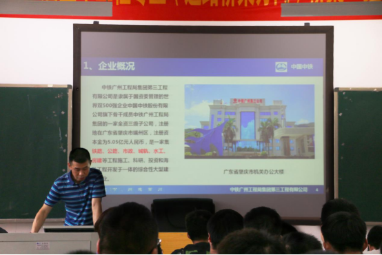 讲座开始前,李宗文对中铁广州工程局集团第三工程有限公司企业沿革、公司资质以及核心技术与自主知识产权等方面作了简要介绍,并以图文并茂的形式向大家展示了该公司在道路工程、桥梁工程、隧道工程、地铁市政以及水工工程的先进技术成果,让大家更加客观地体会到施工过程中的技术运用。