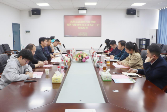 2023年4月7日下午,湖南科技学院经济与管理学院党总支书记王瑛一行来我院调研交流并举行调研座谈会。学院党委书记郭白泉、党委副书记黄智出席,学工办主任朱发国、团委书记李贵、辅导员王鑫等参加座谈会。