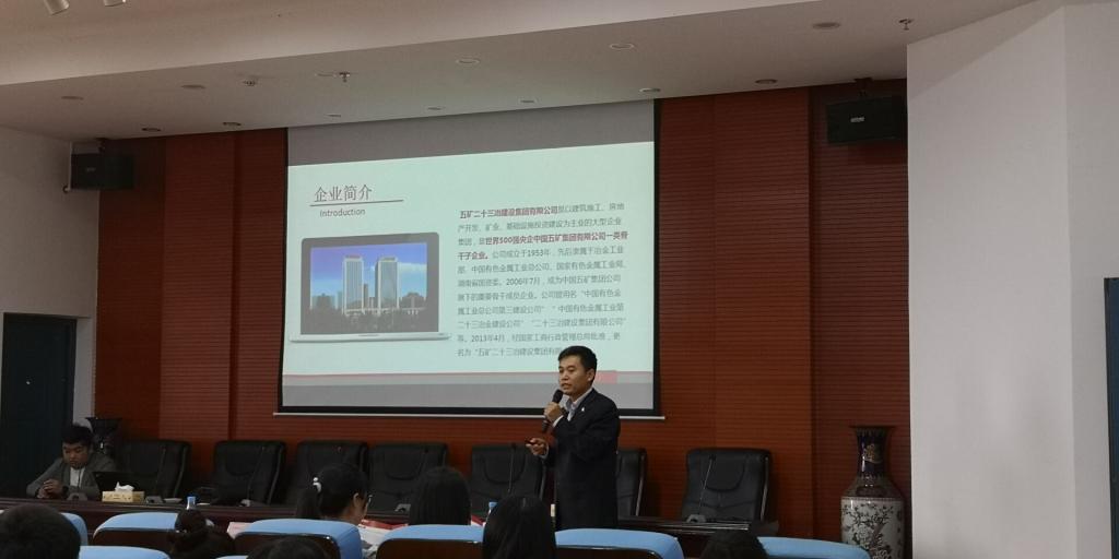(土木院通讯员 周宏波) 5月9日11:00,湖南城市学院与五矿二十三冶建设集团有限公司在土木楼召开“五矿二十三冶班”订单培养合作项目研讨会。同日下午2:00,五矿二十三冶实习生宣讲面试会在土木楼828举行。五矿二十三冶建设集团人力资源部部长惠虎东,五矿二十三冶建设集团绿建工程有限公司党委副书记、副总经理崔栋彧、综合办公室主任周艾菲、湖南城市学院17cg院长曹国辉、党委书记郭白泉、副院长付贵海、王新忠、副书记王传浩、院长助理毛广湘以及土木工程、工程造价系主任、招生就业处代表等参加了本次研讨会。