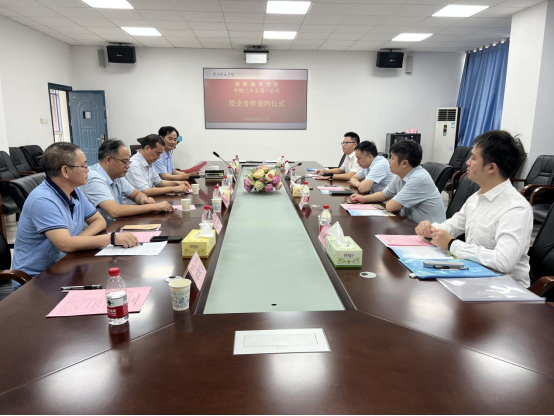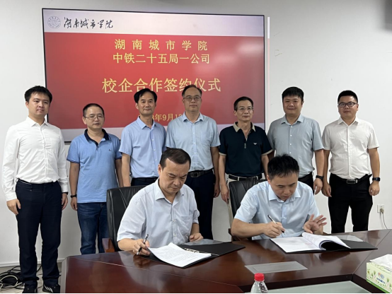 2023年9月13日上午,湖南城市学院与中铁二十五局一公司在我院土木楼722会议室举行座谈交流并签订校企合作协议。湖南城市学院党委委员、副校长雷存喜,中铁二十五局一公司党委委员、副总经理洪羽出席座谈会,学校教务处、17cg主要领导及企业有关负责人参加签约仪式。