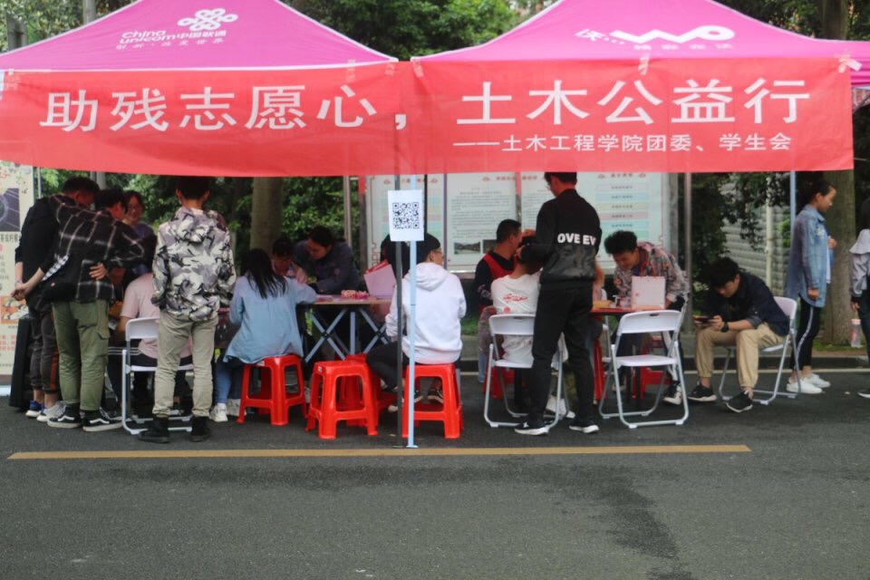 (土木院通讯员 朱泽芝) 为践行社会主义核心价值观,大力弘扬人道主义思想,4月20日10:00,17cg团委、学生会于龙城大道开展了“助残志愿心,土木公益行”摆台活动。