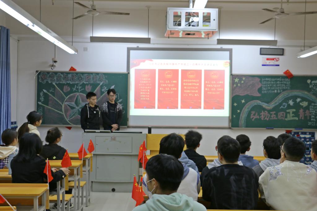 会议伊始,主持人强调了会场纪律。接着,主持人带领同学们开展组织生活会会前学习,回顾了“习近平总书记在庆祝中国共产党成立100周年大会上的重要讲话”和“习近平总书记在纪念五四运动100周年大会上的重要讲话”,并观看了相关视频。紧接着,主持人与同学们重温了《中国共产主义青年团章程》,都得了以团章为标尺,推进自我之革命的核心思想。随后,主持人宣布了组织生活会的开始,同学们齐唱团歌之后,由团支书汇报了团支部今年开展党史学习,组织生活会的准备情况等相关事宜,最后由同学点评讲话之后,同学们再次重温了入团誓词。至此,本次“学党史,强信念,跟党走”10月政治学习活动圆满结束。
