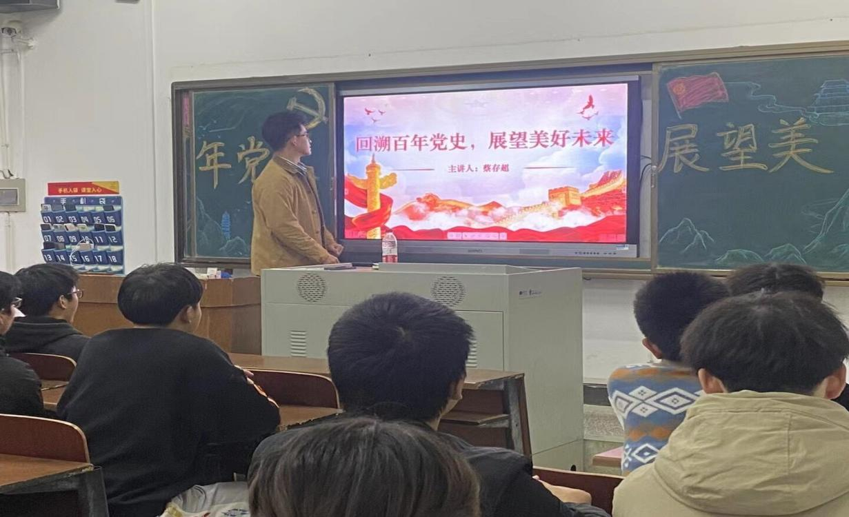 本次团课主题为“回溯百年党史,展望美好未来”,蔡存超重点围绕党史的四个时期进行授课。首先,蔡存超向同学们介绍了新民主主义革命时期重要事件时间线,强调中国新民主主义革命的胜利,使中华民族的历史发生了翻天覆地的变化。紧接着,蔡存超带领同学们学习了社会主义革命和建设时期,回顾总结党领导人民进行社会主义革命和建设的艰苦奋斗历程。在改革开放时期的讲述过程中,蔡存超简要概括了改革开放以来中国现代化建设取得的成果,并简述了改革开放的基本意义。在第四个时期——中国特色社会主义新时代时期的授课过程中,蔡存超着重讲述了中国特色社会主义新时代的意义以及乡村振兴战略。