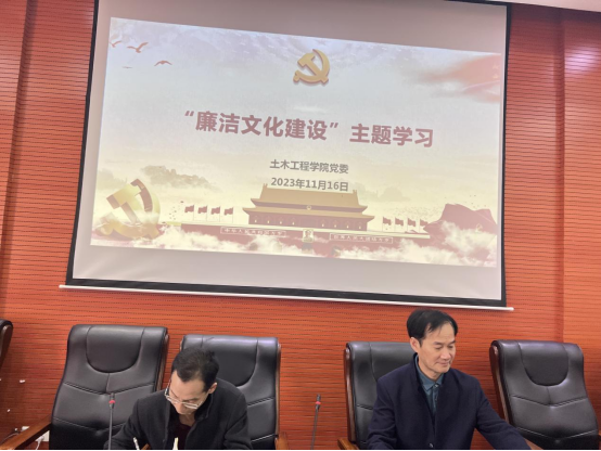 为贯彻落实党的二十大精神和习近平总书记关于加强廉洁文化建设系列论述与指示批示精神,根据中共中央办公厅《关于加强新时代廉洁文化建设的意见》、湖南省委《关于加强新时代廉洁文化建设的若干措施》和学校党委《开展廉洁教育系列活动方案》等文件规定,2023年11月16日下午2:00,院党委在土木楼828报告厅组织开展“廉洁文化建设”专题学习,全院教职工参加学习,院党委书记郭白泉主持学习。
