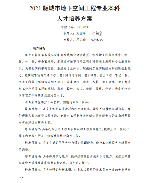 城市地下空间工程2021版人才培养方案